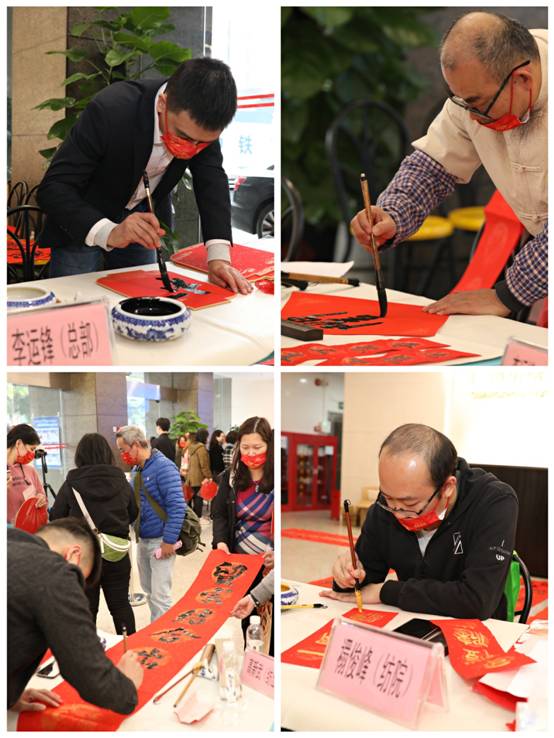 現(xiàn)場(chǎng)聆聽(tīng)廣大員工粉絲心聲,圓大家一個(gè)個(gè)微心愿,邱建和(退休領(lǐng)導(dǎo))、高新武(紡出公司)、禤俊峰(紡織服裝學(xué)院)、李運(yùn)鋒(總部)等福手們?cè)俅螒?yīng)邀現(xiàn)場(chǎng)揮墨為員工送福。筆耕4個(gè)多小時(shí)不停歇,現(xiàn)場(chǎng)創(chuàng)作超400幅,受到廣大職工紛紛贊賞。