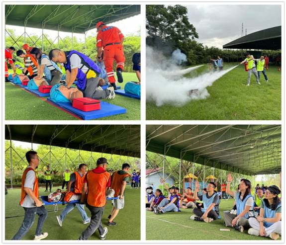 此次運(yùn)動(dòng)會(huì)小組實(shí)訓(xùn)及競(jìng)賽形式進(jìn)行。設(shè)置拯救心臟--心肺復(fù)蘇、消防勇士--滅火器滅火、穿越火線--傷員搬運(yùn)、爭(zhēng)分奪秒--安全生產(chǎn)知識(shí)競(jìng)賽等四個(gè)項(xiàng)目。每個(gè)項(xiàng)目分八支隊(duì)伍先由教官進(jìn)行理論與操作講解,再由同事們實(shí)操訓(xùn)練,最后進(jìn)行實(shí)操比賽。在專業(yè)教官的帶領(lǐng)下,員工們通過(guò)一整上午的認(rèn)真學(xué)習(xí)及親身體驗(yàn),全力以赴參加4個(gè)項(xiàng)目的競(jìng)賽。