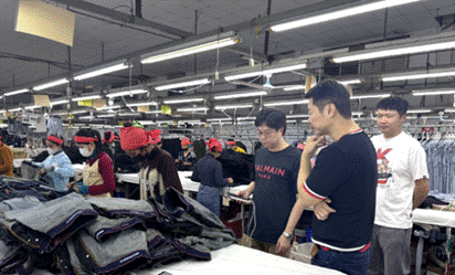 公司業(yè)務(wù)人員在孟加拉牛仔服裝生產(chǎn)基地現(xiàn)場