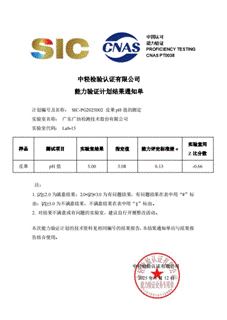 近日,廣紡檢測成功參與由中輕檢驗認證有限公司組織的“SIC-PG2025002 皮革pH的測定”能力驗證計劃。憑借專業(yè)的技術(shù)實力與嚴謹?shù)墓ぷ鲬B(tài)度,我們提交的測試結(jié)果獲評“滿意”。