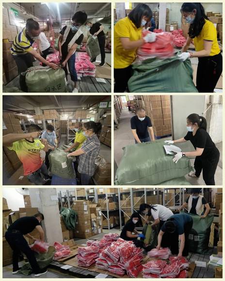 4月11日上午11時(shí)許,當(dāng)紡織公司收到廣州輕工集團(tuán)要求定制5萬(wàn)件印有“我是共產(chǎn)黨員”字樣的志愿紅馬甲任務(wù)后,公司黨委高度重視,第一時(shí)間指導(dǎo)利工民組建黨員團(tuán)員突擊隊(duì)和生產(chǎn)專(zhuān)班,制訂詳細(xì)工作計(jì)劃及分工。一周內(nèi)出這么大批的貨是一個(gè)不小的挑戰(zhàn),而且馬甲貨源還分散在廣州、佛山及浙江一些城市的倉(cāng)庫(kù)中。如何才能以最快速度調(diào)集貨源、如何根據(jù)需求安排好每日出貨量、如何精準(zhǔn)配送到每條街道……這些現(xiàn)實(shí)的問(wèn)題都擺在了工作專(zhuān)班面前。面對(duì)這些問(wèn)題,利工民總經(jīng)理鄭力強(qiáng)迅速理清思路、靠前指揮,一邊率領(lǐng)工作專(zhuān)班與上級(jí)部門(mén)、供應(yīng)商保持密切聯(lián)系,對(duì)接好各個(gè)工作環(huán)節(jié);一邊積極做好內(nèi)部人員調(diào)配工作,確保高效完成出貨任務(wù)。